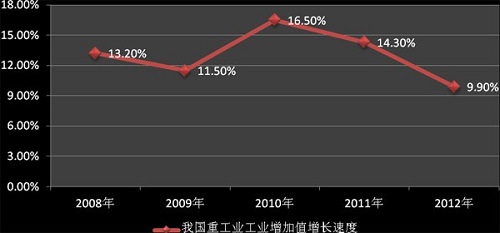 受到國際經(jīng)濟(jì)環(huán)境變動(dòng)的影響,我國重工業(yè)在迎來高速發(fā)展期之后,其行業(yè)增速于2012年初開始有所放緩,呈現(xiàn)增長下滑的態(tài)勢,其主要的冶金礦山機(jī)械行業(yè)、物料搬運(yùn)設(shè)備行業(yè)、礦山機(jī)械行業(yè)等增長情況亦受到影響。