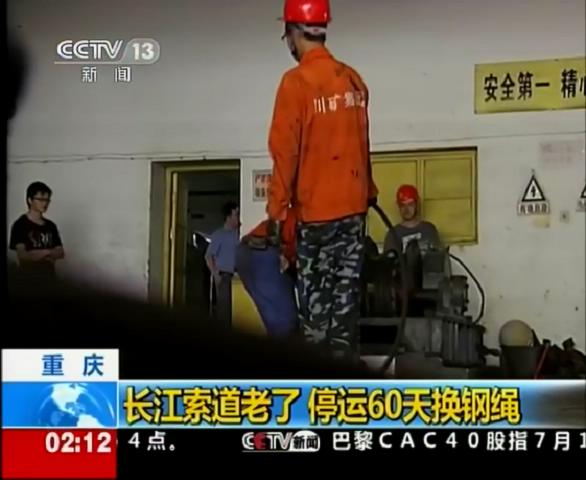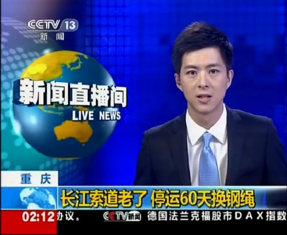 2012年7月18日中央電視臺新聞頻道報道川礦集團(tuán)制造和施工的重慶長江索道