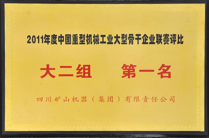 中國(guó)重機(jī)協(xié)會(huì)主持召開的2011年度中國(guó)重型機(jī)械工業(yè)大型骨干企業(yè)廠際聯(lián)賽評(píng)比中,川礦集團(tuán)榮獲“大二組”第一名。其中“總資產(chǎn)貢獻(xiàn)率”、“成本費(fèi)用利用率”、“全員勞動(dòng)生產(chǎn)率”、“工業(yè)經(jīng)濟(jì)效益綜合指數(shù)”、“鋼材利用率”、“人均創(chuàng)利稅”、“銷售利潤(rùn)率”、“單位工資創(chuàng)造工業(yè)增加值”、“工傷事故死亡人數(shù)最低”九個(gè)單項(xiàng)指標(biāo)列聯(lián)賽第一名。